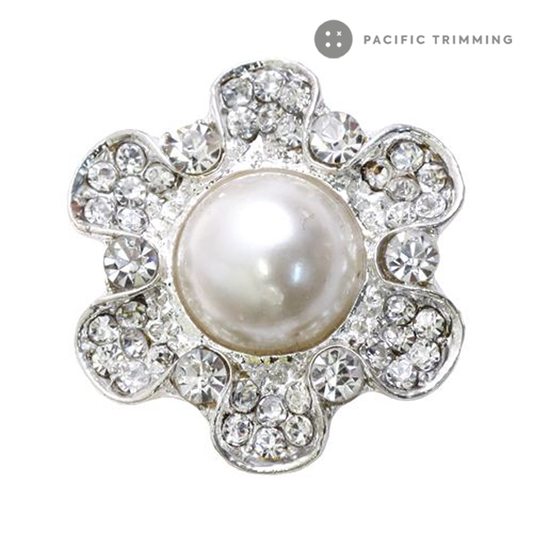 Flower Shape Faux Pearl Rhinestone Button 120197RS