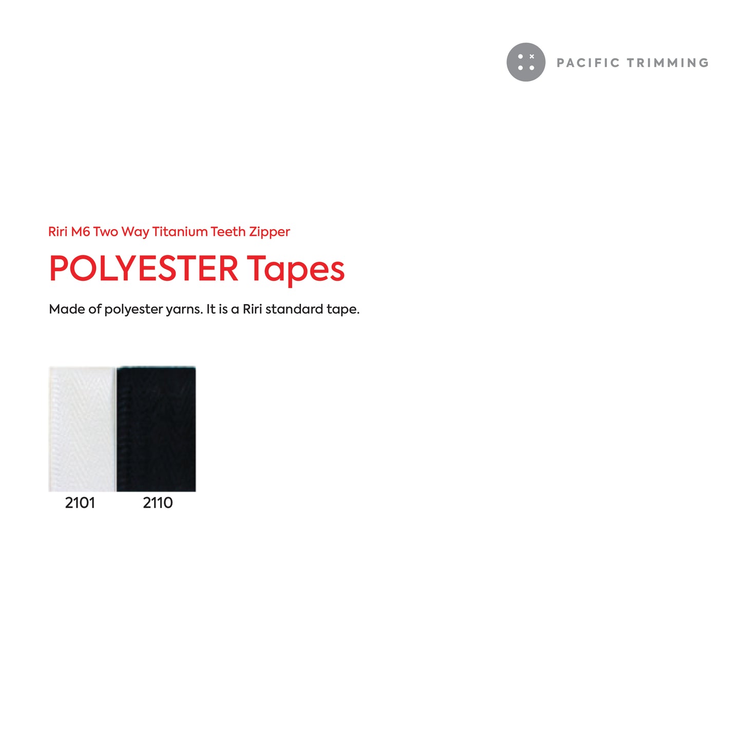 Tape Type : Polyester Made of polyester yarns. It is a Riri standard tape.