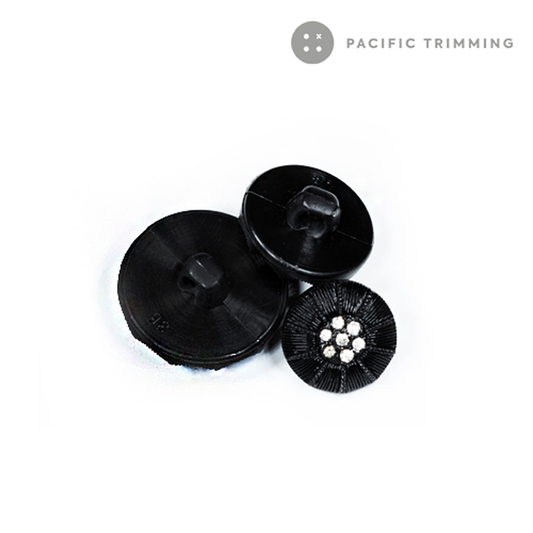 Flower Square Dome Shape Black Rhinestone Shank Button BU190791