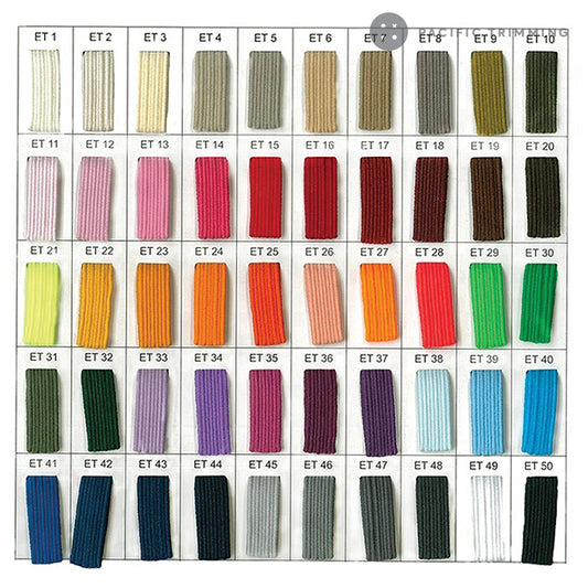 Standard Braided Elastic Band Multiple Colors and Sizes