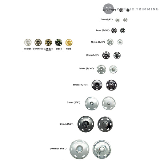 Premium Quality Nickel Allergy Free Gondola Sew On Snaps Multiple Colors and Sizes