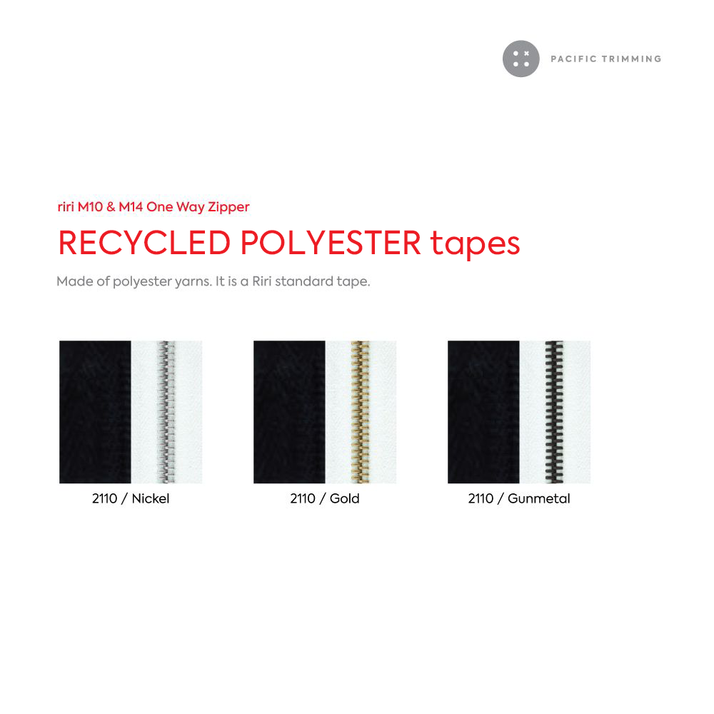 Tape Type : Polyester Made of polyester yarns. It is a Riri standard tape.